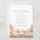 Um convite de salva datas de casamento de montanha com flores silvestres de terracota refinada, projetado para casais que amam paisagens naturais e elegância discreta.