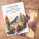Cartão de Save the Date de casamento na montanha com cores laranja queimado e outono e aventura. Personalizado com sua foto no verso. Compre cópias impressas ou encomende digital para compartilhar com amigos e familiares por e-mail ou nas redes sociais.