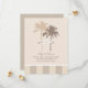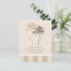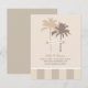 Um save the date descontraído, mas sofisticado, com silhuetas de palmeiras em tom de areia quente e taupe em um fundo de marfim suave, com um painel de listras clássicas na base. Um detalhe de faixa de fita adiciona um toque final encantador. Perfeito para casamentos de destino na praia, locais na Flórida ou qualquer celebração tropical. Todos os nomes, data, local e site são totalmente personalizáveis.