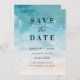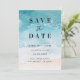 Casamento na Praia do Oceano de Verão Moderno Salve a data apresenta uma cativante ambientação costeira pela praia, com vista para o vasto oceano. Este destino de praia idílico é perfeito para o seu dia especial. Celebre o seu amor com uma cerimônia de tirar o fôlego em meio ao som calmante das ondas.
