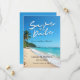 Anuncie seu casamento no paraíso com esses cartões tropicais de “Salve a Data”, apresentando uma cena ensolarada de praia tropical com palmeiras e ondas do mar. Perfeito para um casamento de destino, este design pode ser personalizado com seus nomes, data do casamento e localização. Uma maneira linda de informar aos seus convidados que marquem suas agendas e se preparem para sua inesquecível celebração à beira-mar.