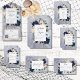 Este design apresenta uma coroa de cor castanho, marinho, cor de pêssego, cor de pêssego, bronzeado e florais brancos em um fundo de cinza azul de cor d'água marinho. Também apresenta elementos náuticos como corda, estrela e âncora. Perfeito para o destino, praia ou casamento no lado da água. Criada pela Simply Farmhouse Press, faz parte da Rustic Floral Beach NMaritime Wedding Suite.