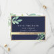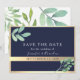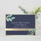 Este convite moderno de casamento boho save the date combina elementos rústicos elegantes com uma paleta de cores azul naval e dourado. Adornado com greenery de eucalipto em aquarela e caligrafia simples, exala charme botânico e sofisticação, garantindo que o seu dia especial seja lembrado com estilo.