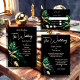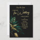 Este cartão de casamento apresenta um design elegante e minimalista, com fundo preto e texto dourado, criando uma estética sofisticada e formal. O script e as fontes serif são usados em composição equilibrada, dando a ela uma sensação moderna, porém clássica. O canto inferior esquerdo é adornado com ilustrações botânicas em tons de verde e ouro, acrescentando um toque de natureza e luxo ao design geral. O esquema é limpo e organizado, garantindo que os detalhes importantes do casamento sejam claramente comunicados. Personalize o cartão com seus nomes e detalhes do casamento. Você pode baixar a placa para seu dispositivo móvel ou computador. O cartão foi criado com a ajuda do ai.