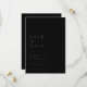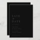 Casamento minimalista moderno salve os cartões de data com design simples, caligrafia elegante em preto mate.