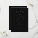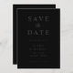 Casamento minimalista moderno salve os cartões de data com design simples, caligrafia elegante em preto mate.