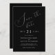 Um Casamento Negra Chic Moderno Elegante Salve a Data. Casamento de designer sofisticado e maravilhoso salve a data com texto branco em preto com cinzas pálidas marcantes Salve o cabeçalho de tipografia de script de data. Personalize com o texto de detalhes da data de salvamento. O dorso é preto sólido. Todos os textos, fontes e cores são personalizáveis e podem ser adicionados ou excluídos conforme você escolher. Convidamo-lo a visitar a nossa loja, Austen & Grace, para ver a suíte de casamento de cheios, produtos correspondentes e muito mais. Entre em contato conosco se precisar de assistência.