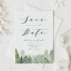 Este código QR salve o cartão de data apresenta uma floresta de cor d'água nevada e um código digitalizável para vincular seus convidados aos detalhes do casamento ou ao seu site. As macias árvores verdes e a neve em queda fazem dela uma escolha excelente para o inverno ou para os casamentos florestais. Personalize-o com seus nomes, data e código QR personalizado. Esta floresta que salva o cartão de data é uma maneira moderna e conveniente de anunciar seu grande dia.