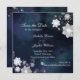 Flores de tecido bonitas + flocos de neve espinhosos e espirais florais + fundo texturizado rústico em tons de azul marinho desenhados no casamento personalizado Salve os Convites de Data. Seu casamento no inverno adorável começa com os convites de casamento super encantadores que você pode personalizar completamente com seu próprio texto. ((Você pode encontrar os essenciais de casamento e favores nesta loja, Bridal Heaven. Entre em contato com ujean4791@gmail.com para obter trabalho personalizado e/ou coordenar papelaria de casamento.)
