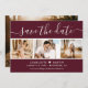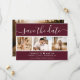 Elegante foto de casamento burgundy salve o cartão de data com uma fonte moderna e uma colagem de fotos. Personalize facilmente este cartão com suas imagens e detalhes de casamento, incluindo um site de casamento, se aplicável.