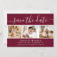 Elegante foto de casamento burgundy salve o cartão de data com uma fonte moderna e uma colagem de fotos. Personalize facilmente este cartão com suas imagens e detalhes de casamento, incluindo um site de casamento, se aplicável.