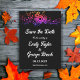 Este casamento outono elegante, exceto o convite de data, é perfeito para um casamento moderno no outono. O simples design apresenta ramos luminosos e folhas com tipografia branca elegante sobre fundo preto.