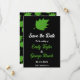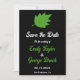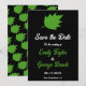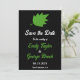 Este casamento outono elegante, exceto o convite de data, é perfeito para um casamento moderno no outono. A simples design apresenta folhas verdes de outono com elegante tipografia branca e verde sobre fundo preto.