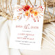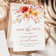 Este simples e elegante casamento outono, exceto a data que o design apresenta um vibrante e natural buquê de flores, folhas e bagas em tons de sol de laranjas profundas, pêssegos e esticamentos para criar uma elegância romântica de vassoura no seu casamento de outono. A paleta de aquecer dos florais aquosos para a frente está perfeitamente ligada a um texto sérvio elegante sobre fundo branco para criar um aspecto brilhante e sofisticado. Uma laranja ferrugem cobrir o contrário para um acabamento complementar. Perfeito por estilizar seu dia especial com um charme elegante de outono!