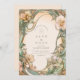 Uma design de casamento romântica Art Nouveau, com cor de pêssego e flores de creme fluentes, entrelaçados com roldanas botânicas verdes e suaves. Esta elegante ilustração rodeia um layout antigo com curvas graciosas e detalhes de ornamentado, perfeito para casais que buscam uma estética de casamento clássica, mas artística, inspirada pela natureza e beleza antiga.