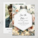 O cartão de salvamento do casamento do personalizado moderno Mason Jar combina o encanto rústico de um jarro de pedreiro com elementos de design modernos e elegantes. Perfeito para casais planejando um casamento moderno com um toque de tradição, este cartão é totalmente editável online, permitindo que você personalize o texto e os detalhes para refletir seu estilo de casamento. O modelo digital está disponível para download instantâneo, dando a você a liberdade de criar e enviar sua data de salvamento sem esforço. Este design oferece o melhor de ambos os mundos, mesclando elementos clássicos com uma vibração moderna e fresca.