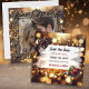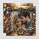 Casamento romântico Salve os cartões de data. O Steampunk tinha as engrenagens de metal-ouro, flores e um fundo dourado. Carregue a sua imagem favorita na área personalizar e edite o texto no verso para adicionar as suas próprias informações de casamento.
