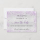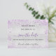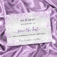 Um fundo moderno com aparência prateada falsa decorado com purpurina falsa roxa, brilhos e um vestido. Personalize e adicione uma data e nomes. O texto: Salve a Data está escrito com um estilo de letra manuscrita moderno e grande.