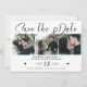 Casamento com script de caligrafia moderna preto-e-branco, minimalista de tendências, salve o cartão com 3 fotos de colagem. ++++++++++ Adequado para qualquer estação e tema. +++++++++ Fácil de personalizar com suas imagens e detalhes em ambos os lados.