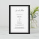 Este design apresenta os nomes da noiva e do noivo como o foco principal do design com uma borda branca, cinza e preta. Nomes personalizados usando tipografia de fontes de script criam uma fusão perfeita de moderno e elegância. Um casamento simples e personalizado minimalista salva a design do cartão de data com monograma moderno, preto, branco e cinza. Os convites de casamento e outros artigos de papelaria também estão disponíveis.