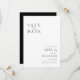 simples casamento de design preto e branco salve o cartão de data com roteiro preto.