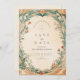 Uma elegante design de casamento Art Nouveau com um romântico quadro floral arquivado em terracota quente, coral e tons verdes mudados. Com intrincadas folhas ornamentais e tipografia clássica, essa peça traz uma nostálgica sensação europeia perfeita para refinados casamentos ao ar livre ou de destino. A composição combina a maciez natural com o charme do eterno.