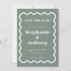 Reserve A Data Casamento Retro com Bordas Onduladas em Verde Salv