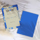 Anuncie o seu casamento em estilo com este belo cartão de identidade, com uma fronteira floral azul e um esquema tipográfico moderno. Um sotaque caprichoso inspirado no coração adiciona um toque romântico, enquanto o fundo amarelo neutro e o azul arrojado completam a aparência. Personalize com seus detalhes de casamento.