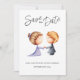Um romântico bonito salvou o anúncio do casamento de data com uma ilustração de uma garota e um menino. Ilustrada e projetada por Patricia Alvarez.