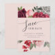 Belo buquê de brida de aquarela, com flores em tons ricos de vermelho e rosa, aparadas com botânicos verdes prateados. Seus detalhes de casamento, em lindas fontes...O resultado é um belo convite a que os seus convidados terão todo o prazer em receber e responder.