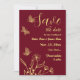 Simples casamento único salve o cartão de data com flores de ouro românticas e elegantes e borboletas em fundo de burgundy PARA MAIS PRODUTOS CORRESPONDENTES clique na coleção acima ou entre em contato comigo.