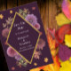 Casamento romântico da dália de outono: Folhas de outono acompanham quadro floral em vários tons roxos
