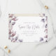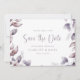 Casamento Roxo Salve a Data. Suave, sonhadora e romântica, este convite de casamento para na moda apresenta uma bela moldura de aquarelas de folhas e flores pintadas manualmente em tons monocromáticos de roxo, ameixa e pintas moles com script e texto roxo correspondentes. O verso do convite inclui o mesmo buquê de folhas e uma foto de noivado. Encontre itens correspondentes na Coleção de Casamentos Botânicos Roxos Elegante.