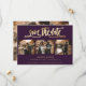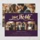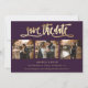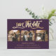 Cartões salve a data de fotos de púrpura elegante e casamento dourado com um moderno título de roteiro de folha de ouro falso. Personalize facilmente este casamento roxo, salve a data com suas imagens e detalhes de casamento, incluindo um site de casamento.