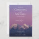 Casamento roxo roxo de montanhas de neve roxa. Design de casamento romântico com uma fotografia de paisagem de neve coberta de montanhas rochosas. As montanhas mal são tocadas pelo brilho laranja macio do sol de fixação. O céu acima da majestosa cordilheira é colorido em tons naturais tão espantosos de rosa e roxo. Um gradiente leve e arejado de cores lentamente mudando de púrpura para índigo profundo e azul. Todas as informações sobre o produto podem ser totalmente personalizadas clicando em "Personalizar este modelo". Se você quiser alterar o tamanho da fonte ou mover algumas coisas ao seu redor, você pode alcançar isso clicando em "Editar usando a ferramenta design". Você sempre pode me contatar sobre o design clicando em "mensagem" abaixo.