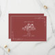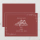 Ilustração de celeiro rústico no topo com borda botânica de arte de linha. O plano de fundo é vermelho-apagado.