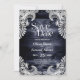 Informe seus amigos e entes queridos de sua data de casamento para que eles possam fazer arranjos para comparecer a este cartão de casamento rústico de cadarço branco de madeira azul.
