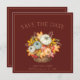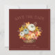 O Rustic Dark Terracotta Autumn Fall Harvest Pumpkins Casado Salve os Cartões de Data - Abraça o Calor da Estação. Celebre o seu amor entre a beleza do outono com os nossos cartões de casamento encantadores, que incluem abóboras rústicas e matizes cor de laranja quente e escuras. À medida que você "se apaixona" e embarca nesta nova jornada, estas cartas salvas capturam a essência do encanto da estação. A design inspirada na colheita exude a confortável vibração da casa de fazenda, dando vida ao espírito do outono. Compartilhe a magia do seu dia especial com a família e amigos usando estes cartões sofisticados de salvamento de casamento outono, onde as cores animadoras da estação se misturam perfeitamente com a promessa de um belo futuro.