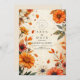 Traga alegria e calor para o seu dia especial com esta alegre design de casamento no outono. Apresentando margaridas aquáticas em vermelhos vibrantes, amarelos e brancos com folhas de queda espalhadas, é perfeito para uma celebração rústica e romântica. Totalmente editável com seus detalhes.