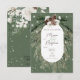 Este design apresenta um pinho verde-rústico e buquê pinecone em um fundo verde-pinho com flores brancas. É acentuado com uma camada branca de brilho para ilustrar a magia das belas férias de inverno. Perfeito para um Natal ou casamento no inverno. Este cartão faz parte da suíte rustic Green Pine Winter Sparkle Wedding, criada pela Simplesmente Farmhouse Press.