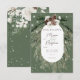 Este design apresenta um pinho verde-rústico e um buquê pinecone em um fundo verde-pinho macio com flores brancas. É acentuado com uma camada branca de brilho para ilustrar a magia das belas férias de inverno. Perfeito para um Natal ou casamento no inverno. Este cartão faz parte do Rustic Tan Pine Winter Sparkle Wedding Suite criado pela Simplesmente Farmhouse Press.