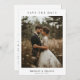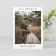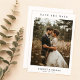Esse casamento de fotos russas Salve a data apresenta um cenário romântico de floresta com o casal abraçado, destacado por um pano de fundo suave e natural. O design usa a tipografia clássica sobre a imagem, apresentando um eterno e um apelo elegante.