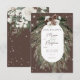 Este design apresenta um pinho verde rústico e um buquê pinecone sobre fundo castanho de cacau macio com flores brancas. É acentuado com uma camada branca de brilho para ilustrar a magia das belas férias de inverno. Perfeito para um Natal ou casamento no inverno. Este cartão faz parte do Rustic Tan Pine Winter Sparkle Wedding Suite criado pela Simplesmente Farmhouse Press.