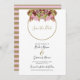 Esta design apresenta um buquê rústico de flores silvestres. Um simples círculo dourado enquadra o título. Os tons rústicos cor-de-rosa floral elogiam o verde das folhas. Os tons de ouro unem tudo para criar uma sensação rústica de jardim florestal rural. Ouro e listras cor-de-rosa cobrir a parte traseira do design. Casamento elegante Salve a design do cartão de data com elementos modernos. Os convites de casamento e outros artigos de papelaria também estão disponíveis.
