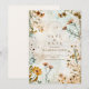 Ponha um tom quente e rústico para sua celebração com este design de casamento de flor silvestre ouro. Apresentando flores moles de aquarela, tons sujos e folhagem delicada, ele captura a magia de uma transição de verão para outono. Perfeito para casamentos ao ar livre, locais de celeiro ou casais que amam um estilo natural e romântico.