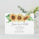 Cartão de aviso de Casamento Rústico Botânico de Girassol em Aquarela para salvar a data.