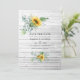 Salve a data de casamento rústico country em celeiro com girassol e eucalipto brilhantes, personalizável para os detalhes do seu evento.