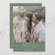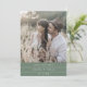 Esta foto-natureza, casamento simples e rústico da floresta, exceto o cartão de data é perfeito para um casamento de destino de madeira. O design verde-sábio escuro apresenta uma tipografia simples e rústica com uma sensação de montanha de floresta. Personalize suas datas com uma foto de noivado, seus nomes e sua data de casamento. Adicione seu site de casamento à parte de trás do cartão.