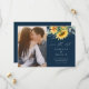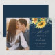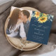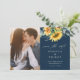 Um convite de casamento de outono rústico com foto e buquê de girassol e eucalipto em aquarela. Clique no botão de edição para personalizar este design.