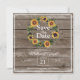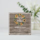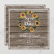 Convite de casamento rústico e elegante com um belo arco de girassol e fundo de madeira. Personalize com um código QR no verso para que os convidados possam facilmente abrir o site do seu casamento.